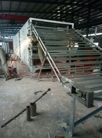 網帶式干燥機是由若干個獨立的單元段所組成,每個單元段包括循環(huán)風機,加熱裝置、單獨或公用的新鮮空氣抽入系統(tǒng)和尾氣系統(tǒng)。因此對干燥介質數(shù)量、溫度和尾氣循環(huán)量等操作參數(shù),可進行獨立控制,從而保證了帶式干燥機工作可操作條件的優(yōu)化。其工作原理是將濕物料由進料端加料裝置被均勻分布到輸送帶上,熱風經分布板送至輸送帶的下部垂直上吹,或送至輸送帶的上部垂直下吹,熱風穿過物料層,把物料中的水分汽化,部分濕蒸汽排出箱體,另一部分再循環(huán)利用。帶式干燥機的輸送網帶由變速電機帶動,可根據(jù)物料的性質,產量、溫濕度等因素予以調速,以保證產品的質量。